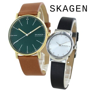 スカーゲン ペアウォッチ SKAGEN 腕時計 シンプル 北欧デザイン メンズ レディース ペアセット レザーベルト 革 時計 グリーン シルバー ブラウン ブラック カップル 誕生日 記念日 ギフト...
