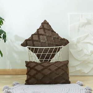 クッションカバー 40x40cm 北欧 2枚セット フェイクファー ベルベット おしゃれ 可愛い 柔らかい 立体的 柄 幾何学模様 モダン ファスナー 家庭装飾 車 飾り インテリア (ダークブラウン,...