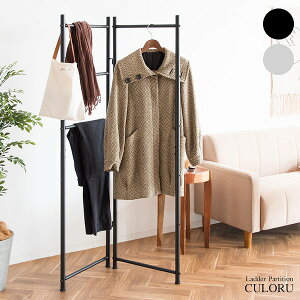 ロングコートやワンピースも収まる高さのハンガ?ラックとカバンやストールなどを掛けられるラダーラックが一つになった便利なラダーパーテーション バーの位置は4段階でお好みの位置に取り付けられるのでボトムやカバンなどお気に入り