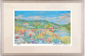 画家名:石井清 作品名:虹とルピナス・G 絵のサイズ:W44,5×H26,5cm 額装サイズ:W64×H49cm 版画の技法:ジークレー サイン:作家直筆サイン 納期:10日 石井清先生がジークレーの版画で制作したインテリアの絵画「虹...