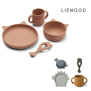 LIEWOOD/ Vivi シリコン製テーブルウェア4点セット【Cat dark rose/Dino Blue】