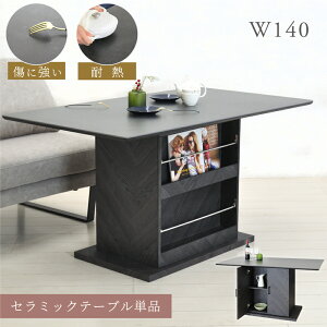 セラミック天板 幅140 4人用 6人用 長方形 応接 オフィス セラミック 大理石調 石目調 グレー 北欧 おしゃれ モダン 食卓テーブル マガジンラック 収納テーブル FSA-568