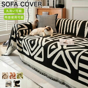 ソファカバー 膝掛け マルチカバー 大判 長方形 マルチクロス ベッドカバー おしゃれ かけるだけ 幾何学柄 北欧風 フリンジ リバーシブル 両面使用 厚手 洗える 防塵 キズ防止 汚れ防止 犬猫対策 ブランケット...
