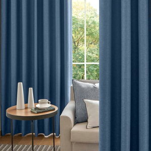 INTERIOR 北欧風 遮光カーテン 2枚セット 1級遮光 防音 断熱 既成カーテン 厚地 無地 スタイリッシュ 省エネ 調節可能フック付き 洗濯可 リビング?寝室?カフェ用 (紺色,リネン風生地, 幅10...