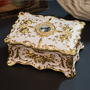 【gold red】Rectangle Rose Gold White Jeweled Metal Trinket Box Vintage Home Wedding Decor Bejeweled Zinc Alloy Jewelry...
