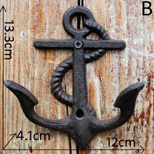 【B】European Farm House Accents Handmade Small Size Antique Rustic Anchor Design Cast Iron Wall Mounted Decor Hook Wit...