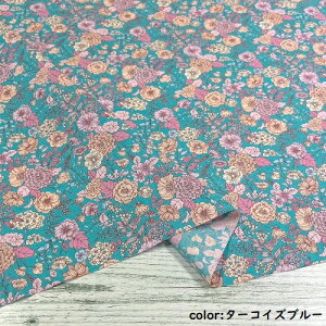 おしゃれな北欧風の花柄生地。150cm幅を生かして、エプロン、バッグをはじめ、カーテンなどインテリア、雑貨などにオススメです。