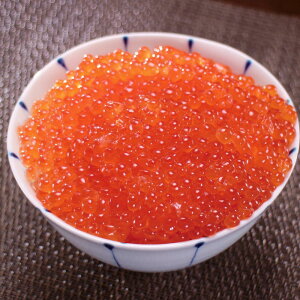 北海道産の秋鮭のいくらです。川に戻る前の鮭を海で漁獲し、鮮度がいいうちに工場へ運び加工します。皮がやわらかく、味も濃厚!口に入れると「とろ〜」っととろけます。皮が硬くなる前の柔らかいいものを厳選しているから...