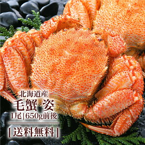 約2人前 内容量:1尾650g前後※冷凍状態の重さです。解凍後は2割程度目減りします。原材料:毛蟹/北海道産、塩※輸送中の衝撃等で足が折れる場合がございます。予めご了承下さい。 消費期限 −18℃以下冷凍状態で約1ヶ月...
