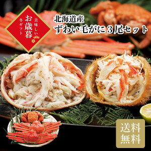 商品情報 名称 北海道産ずわい毛がに3尾セット 内容 ずわいがに(北海道産)(約400g)×2・毛がに(北海道産)(約320g)×1 賞味期限 出荷日より冷凍で約25日