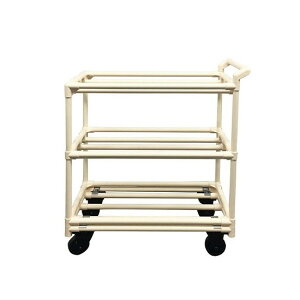 ●軽量なので運搬しやすいです。●薬品コンテナーBC-1Yが9個収納できます。●コンテナーが滑り落ちないように段になっています。●材質:鋼鉄パイプ(AAS樹脂加工)●キャスター:φ100mmプラスチック製(自在2輪・ストッパー無し)●幅×奥