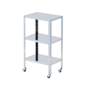 ●天板は落下防止用の皿型・フラット型のどちらにも組み立て可能です。●棚板は取り付け高さの調節ができます。●材質:ステンレス(SUS430)●有効作業面寸法:447×297mm●キャスター:φ40mmゴム製(2輪ストッパー付き)●棚間隔...