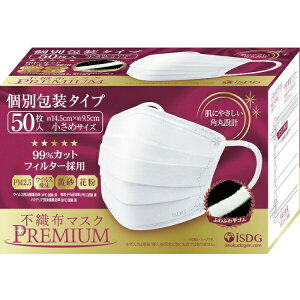 医食同源ドットコム 不織布マスク PREMIUM 小さめ 50枚入 個別包装 個別包装タイプの不織布マスク やわらかい耳ゴム 小さめマスク 4562355181361 <...