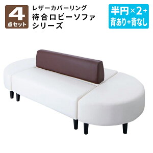 スタンダードソファ デザインソファ 空間に合わせて色と形を選ぶレザーカバーリング待合ロビーソファ ソファ4点セット 半円×2+背あり+背なし 2P×4