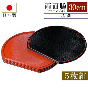 【ラッピングについて詳しくはこちら】 紀州漆器の丁寧に塗り上げた半月盆紀州塗り 尺1寸 半月 両面膳(ノンスリップ)(5枚組) 品番 bo-684 サイズ 33×29×1.5cm 材質 ABS樹脂 塗装の種類...