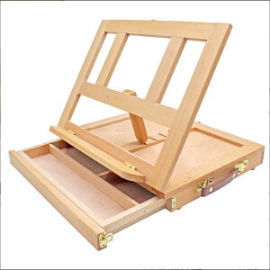 【気軽に絵が描ける卓上イーゼル】卓上に置いて使いやすい小型タイプのイーゼルです。絵の具・画材が収納可能な引き出しとパレットが付属します。【角度調節】角度を、完全に閉じた0度から段階に調節が可能。お好みの角度で描画するこ