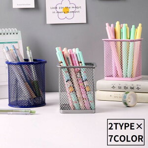 多機能&大容量のシンプルデザイン!机上・デスク周りの整理整頓に♪ 2タイプ×7カラーから選べる金属製メッシュタイプのペンスタンドです。 文房具の収納はもちろん、メイクブラシなどの化粧品収納にも便利☆ 【サイズについて】 画像
