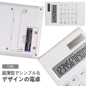 税計算機能付きの12桁卓上タイプ電卓。手のひらサイズの小型タイプで持ち運びにも便利です。●液晶傾斜表示・計算状態表示・修正キー・電池とソーラー電池の2電源●サイズ:W104*D14*H172mm●12桁卓上タイプ●材質:本体ABS樹脂...