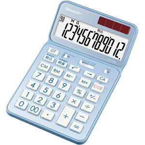 電卓 12桁 (ナイスサイズタイプ) ブルー系(クリアブルー) 抗菌剤を練り込んだキーを採用。表面にアルミパネルを使用した高級感あるカラー・デザイン電卓。大型表示を見やすい角度に調整できるチルトディスプレイ。