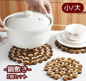 竹製のお洒落な鍋敷き2個セットです。 サイズは小・大からお選びいただけます。 【サイズについて】 画像をご参照ください。 【カラーについて】 生産ロットにより柄の出方や色の濃淡が異なる場合がございます。 お使いのモニターや撮影
