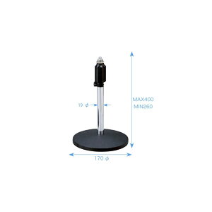 離島配送不可となります。 当店は正規販売代理店です。 特長 250〜400mmまでの高さ調整が可能な卓上マイクスタンドです。 最大径直径35mmのマイクまで保持できるクリップ式のマイクホルダー付