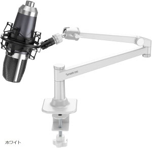 ??【デスクアーム式マイクスタンド】机端に留めるタイプのマイクアームは、自由自在にアームを伸縮可動ができ、手元のスペースを邪魔することなくマイクを口元に設置する事が可能です。インターネット生放送・ゲーム実況用として...