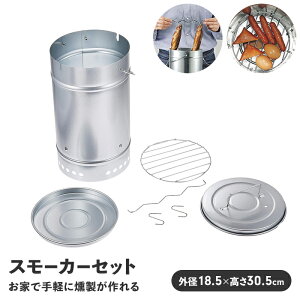 商品情報カセットコンロで簡単に燻製が楽しめるスモーカーセットです。手軽に持ち運べるコンパクトスモーカーです。本体と底板が外れるから使用中でもチップのつぎたしが簡単!温度計取り付け穴付きで、M-9499(別売)が差し込めます。吊