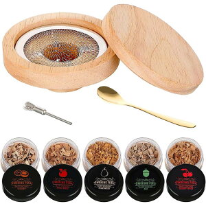 【カラー】写真の通り素材:木製セット内容:スモークトップ+5種類の木製チップ【この商品について】【サッと本物の燻製】グラスの上でサッと燻製できるお手軽さが魅力。【5種類の燻製チップ】全5種類の燻製チップの様々な香りで、同じお
