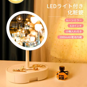 自然光に近いライトがやさしく照らしてくれるのでメイクがしやすい!コードレスなので場所を選ばない! LED・ミラー部の角度調節可能小物・アクセサリーを置くのに便利なトレー型台座!一度の充電で4〜30時間使用可能 ※使用時間は明るさに