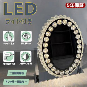 アなミラー/無階段に調光する/長時間利用可能 LED ライト付き LEDブライトミラー LEDミラー ドレッサー 卓上ミラー 鏡 ライト LED 化粧鏡 照明 メイク 自然な光でもっとリアル 3色調節可能...