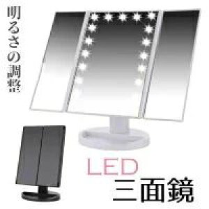 女優ミラー 卓上ミラー 三面鏡 大型 LEDライト付き 化粧 メイク