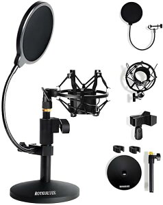 取り外し可能なマイクスタンド:重厚な金属製のベースがマイクを に保ち、落ちにくいマイクデスクトップスタンド マイクホルダー:マイクのフロントパネルを避けるための弾性ロープの構造設計、機能付きマイクの便利な使用を考慮した、デスクトップマ...