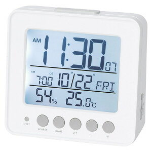 コンパクトサイズでお部屋に馴染む●2つの時刻をアラーム設定できて平日・休日の使い分けに便利●ライト付き●カレンダー表示●温度・湿度表示【使用電池】●単3×2個(別売品)※充電式電池は使