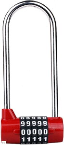 名5桁 ロング U字型 南京錠 ダイヤル ロック 鍵 ナンバーロック 防犯 盗難防止 施錠 レッドブランド株式会社サザンウインドカラーレッド・5桁のダイヤルロックU字型南京錠・安心の5桁の...