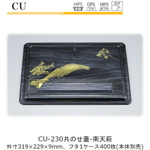 商品名 CU-230共のせ蓋(南天萩)※フタのみ サイズ(mm) 319×229×9mm 色柄・蓋種 南天萩・のせ蓋 ケース入数 400枚 袋入数 20枚 素材 HIPS(ハイインパクトポリスチレン)...