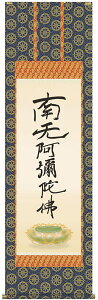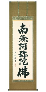 丁寧に仕上げられた日本製の掛軸。勢いのある筆さばきで墨痕鮮やかにしたためた、日々の平安を授けてくれる名号作品です。阿弥陀如来の慈愛が満ちあふれるありがたい六文字です。サイズ約700(紐除く)×巾250...