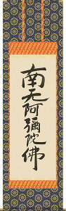 仕様 サイズ 掛け軸寸法:尺五立 約横54.5×縦190cm (標準サイズです・一間床に最適) 仕様 表装 : 金襴佛表装 本紙 : 新絹本 軸先 : 陶器 高級桐箱付き ※各アイコンの意味は、こちら 説明 「南無...