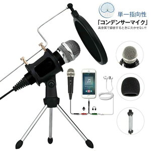 【最新版】コンデンサーマイク USB マイク PC マイク カラオケマイク 単一指向性 マイクスタンド(アームスタンドと三脚スタンド付き)ポップガード付き エコー調整 マ
