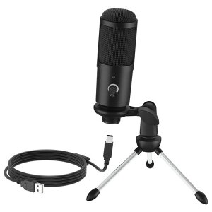 タッチ式ミュートボタン付きで音声チャットに最適なコンパクトUSBマイク。