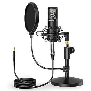 XLR-3.5mmマイク コンデンサーマイク マイクセット 単一指向性 配信用マイク アームスタンド/25mmラージカプセル 音響システム/アンプ/ミキサー向け 音楽製作/録音/生放送/YOUTUBE/ポッドキャストに適応(AU-PM...
