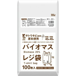 TU45バイオマス配合25%レジ袋45号白100枚。【製造者】ハウスホールドジャパン(株)。【生産国】ベトナム。【単品内容量】100枚。