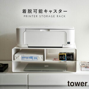 プリンター台 机上 卓上 プリンター 収納 ツーウェイプリンター収納ラック タワー tower シンプル ホワイト ブラック 山崎実業 yamazaki。キャスターをつけても外しても使える2way!