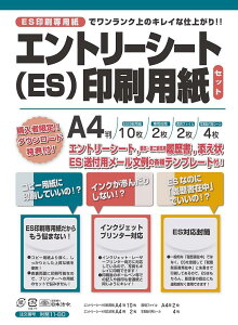 エントリーシート 印刷用紙セット 労務11-80 A4判 4976075126883 A4サイズES印刷用紙(労務12-40と同じ用紙) 10枚 A4サイズ封筒(就職関係書類在中の朱書印刷) 2枚 A4サイズ透明ファイル...