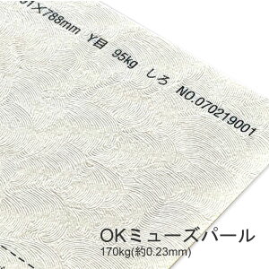 製品仕様 商品名 OKミューズパール170kg メーカー名 王子特殊紙 サイズ ・B4(364mmx257mm) 厚さ 0.23mm 色 全1色展開 商品説明 細かい半渦の模様でどの角度でも光を反射。際立つパール感 小さな半渦柄の模様...