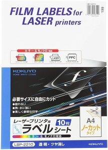 サイズ:A4 1片の大きさ:297・210 面数:ノーカット 仕様:透明・ツヤ消し 枚数:10枚 面付番号:A4L1-1 ●材質/PETフィルム●フィルム厚/ラベル本体:0.07mm(総厚188g平米相当・0.15mm)