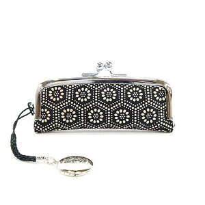 印傳屋・印伝の品番4303型 メンズ レディースのがま口(口金式)の和柄でコンパクトな、黒×黒、和風柄がかわいい印鑑ケースです。 ◆伝統的工芸品です。 甲州印伝は経済産業大臣指定伝統的工芸品に認定されており...