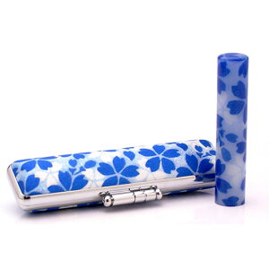 和風柄をあしらった印鑑とお揃い柄の印鑑ケースがセットになったハンコです。※印材・ケースのみでの販売は出来ませんのでご了承ください。銀行印や認め印にピッタリな12mmサイズの印鑑です。印鑑ケースは外出先でも便利な朱肉付きです