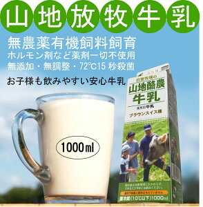 無添加放牧牛乳 山地酪農牛乳1000ml×2パック★クール便★無農薬有機飼料で飼育した、山地放牧牛の無調整ミルクです。低温殺菌(72℃で15秒)脂肪分無調整のノンホモです。クセが無くさっぱりした飲み口...