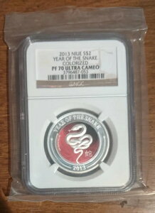 2013 Niue 1/2 oz PF70 Silver $2 Lunar Snake Colorized Red Reptile Egg Case COA商品について製造国/地域:ニウエ認証:NGC1/2オンスあたりの貴金属含有量:...