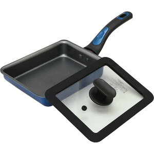 谷口金属 お弁当作りに最適な 玉子焼き 卵焼き フライパン 蓋付きセット IH ガス火対応 13×18cm 深型 金属ヘラ対応 中身が見える ガラス蓋 餃子 目玉焼き こびりつきにくい ちょい深 ブル...